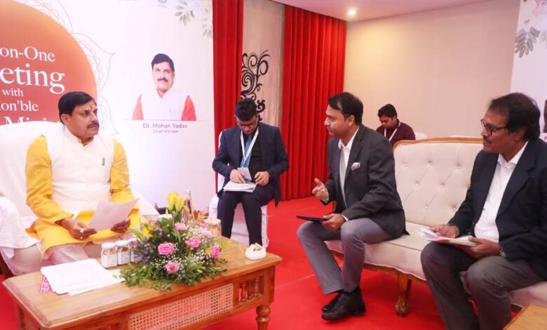 मुख्यमंत्री डॉ. यादव से अरबिंदो हॉस्पिटल ग्रुप के चेयरमैन डॉ. विनोद भंडारी, लीजर होटल्स ग्रुप के डायरेक्टर मुकुंद प्रसाद, शतायु आयुर्वेद के सीईओ और एमडी डॉ. मृत्युंजय स्वामी, मेफ़ेयर ट्रैवल्स के एमडी शरद थडानी, लाभम ग्रुप के डायरेक्टर युगांश सोनी, शांतिगिरी आश्रम के जोनल हेड स्वामी चितासुधन ज्ञान तपस्वी, रॉयल ऑर्किड होटल के डायरेक्टर सुदीप रॉय, एरा हॉस्पिटैलिटी के संस्थापक शिवंदर सिंह, सीएचएल हॉस्पिटल ग्रुप के डायरेक्टर राजुल भार्गव, लेटेन्ट डेवकॉन के डायरेक्टर देवांग कपाडिया, जिंदल नेचरक्योर इंस्टीट्यूट के चीफ एडमिनिस्ट्रेटिव ऑफिसर सुधीर एम.वी., ट्रैवलपैक के चेयरमैन अशोक पटेल, हार्टफुलनेस इंटरफेथ प्रोग्राम्स एंड इवेंट के डायरेक्टर त्रिलोचन चावला और सनसेट डेजर्ट कैंप के सीईओ और एमडी हितेश्वर सिंह सिसौदिया ने वन-टू-वन चर्चा की।