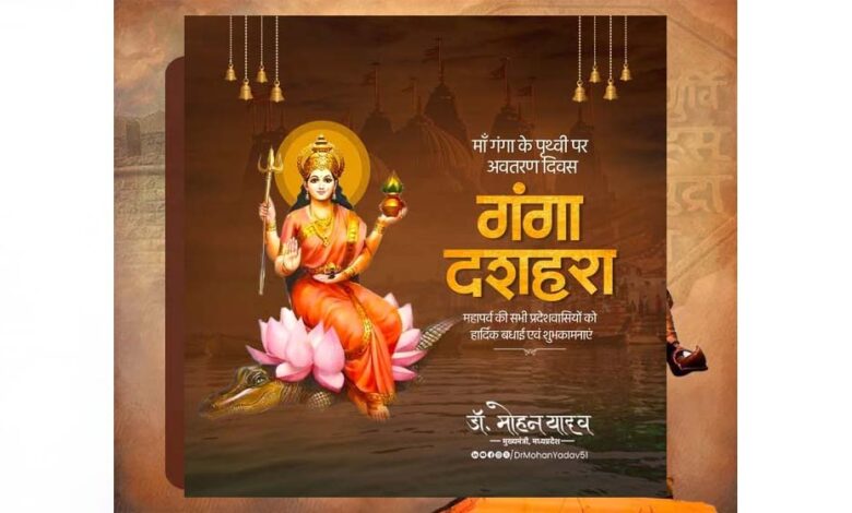 मुख्यमंत्री डॉ. मोहन यादव ने प्रदेशवासियों को गंगा दशहरा के पावन पर्व की शुभकामनाएं दी है। मुख्यमंत्री डॉ. यादव ने कहा कि मां गंगा सभी की मनोकामनाएं पूरी कर, अपनी अविरल धारा के समान सभी के जीवन में सुख, शांति और संपन्नता प्रदान करती रहें, जीवनदायिनी मां गंगा से यही प्रार्थना है।