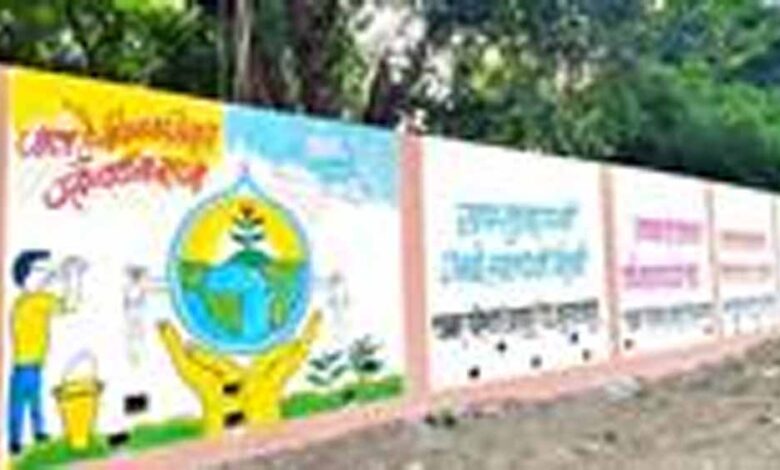 दीवारों पर पेंटिंग बना कर जल संरक्षण का संदेश